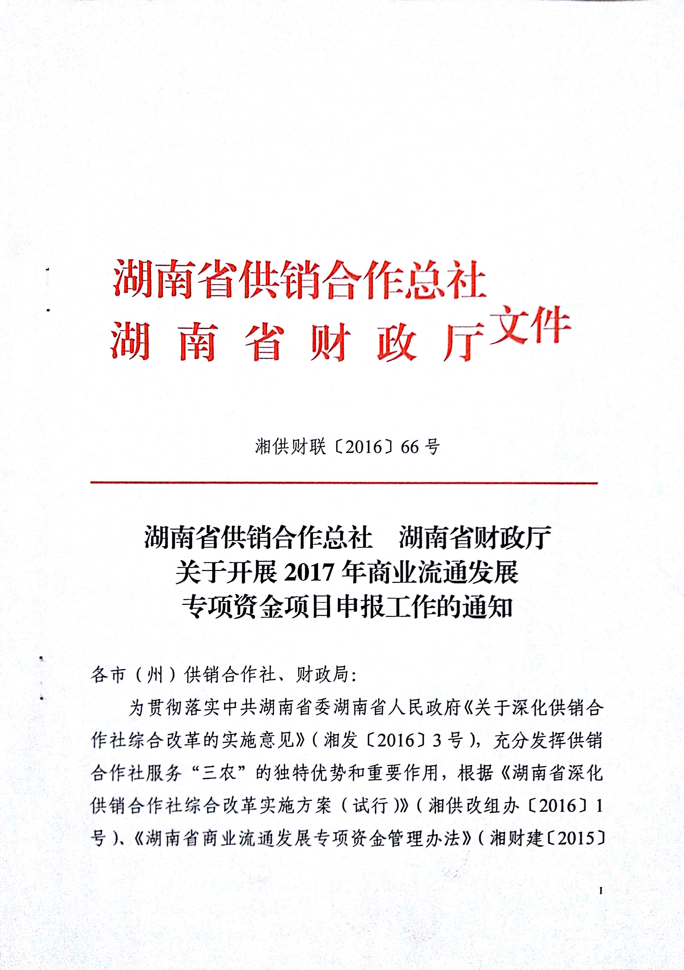 关于开展20l7年商业流通发展专项资金项目申报工作的通知