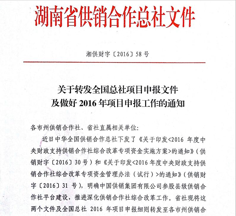 关于转发全国总社项目申报文件及做好2016年项目申报工作的通知