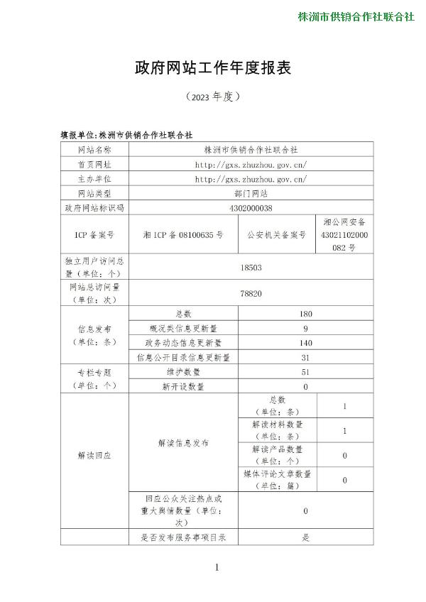 株洲市供销合作社联合社政府网站工作年度报表(2023年度)